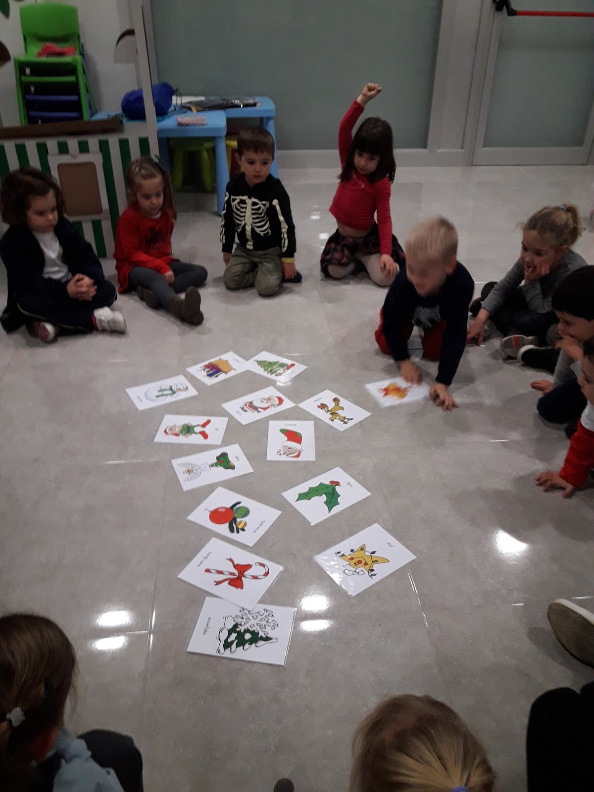 Per tal de treballar el vocabulari de Christmas, els teachers ens van fer uns jocs molt divertits amb les flashcards, unes targetes amb imatges del Nadal. Aquestes targetes ens ofereixen moltes possibilitats d’aprenentatge, ja que les amaguem, ens les passem, piquem de mans els noms, provem d’endevinar-les, etc.