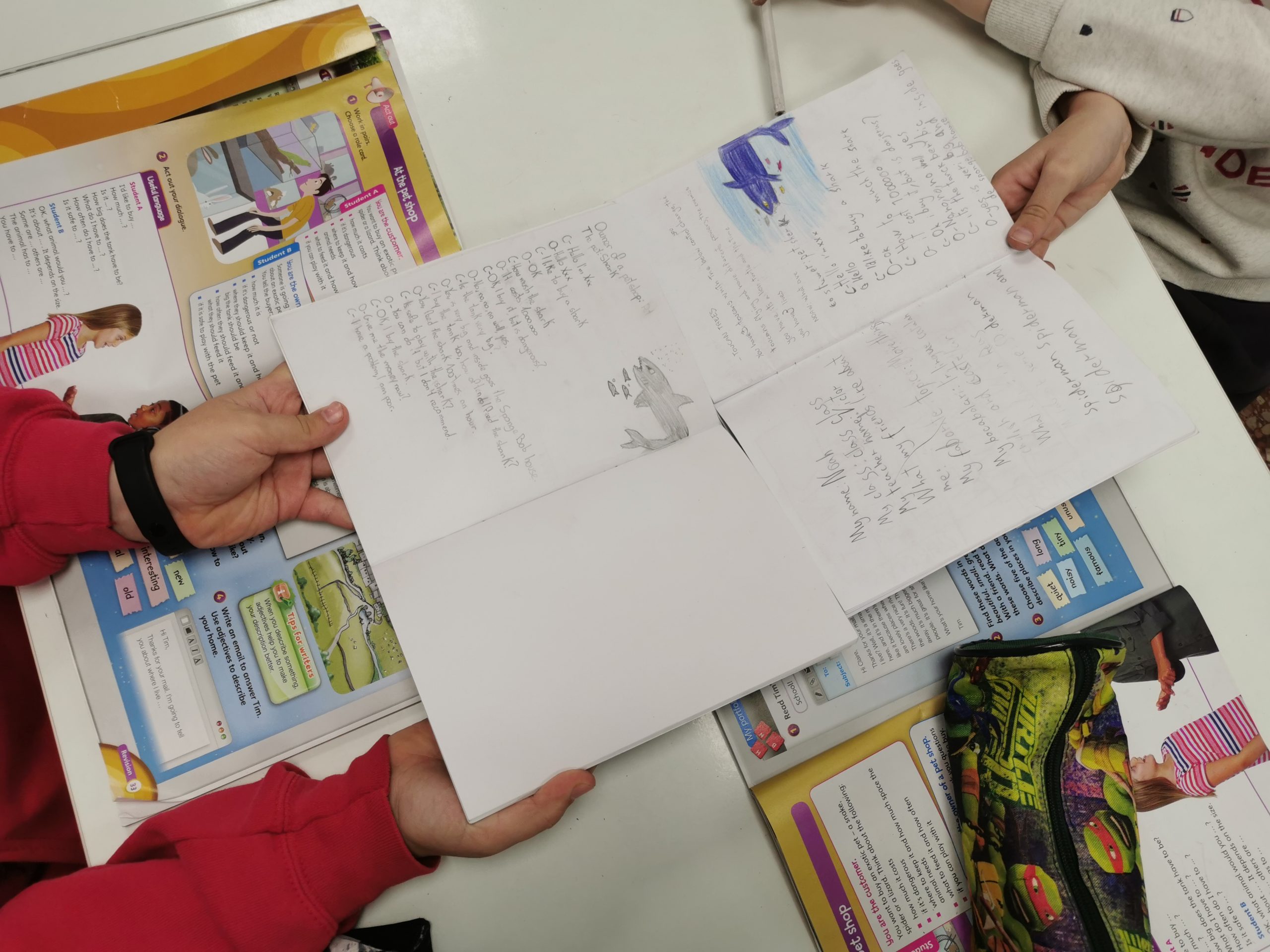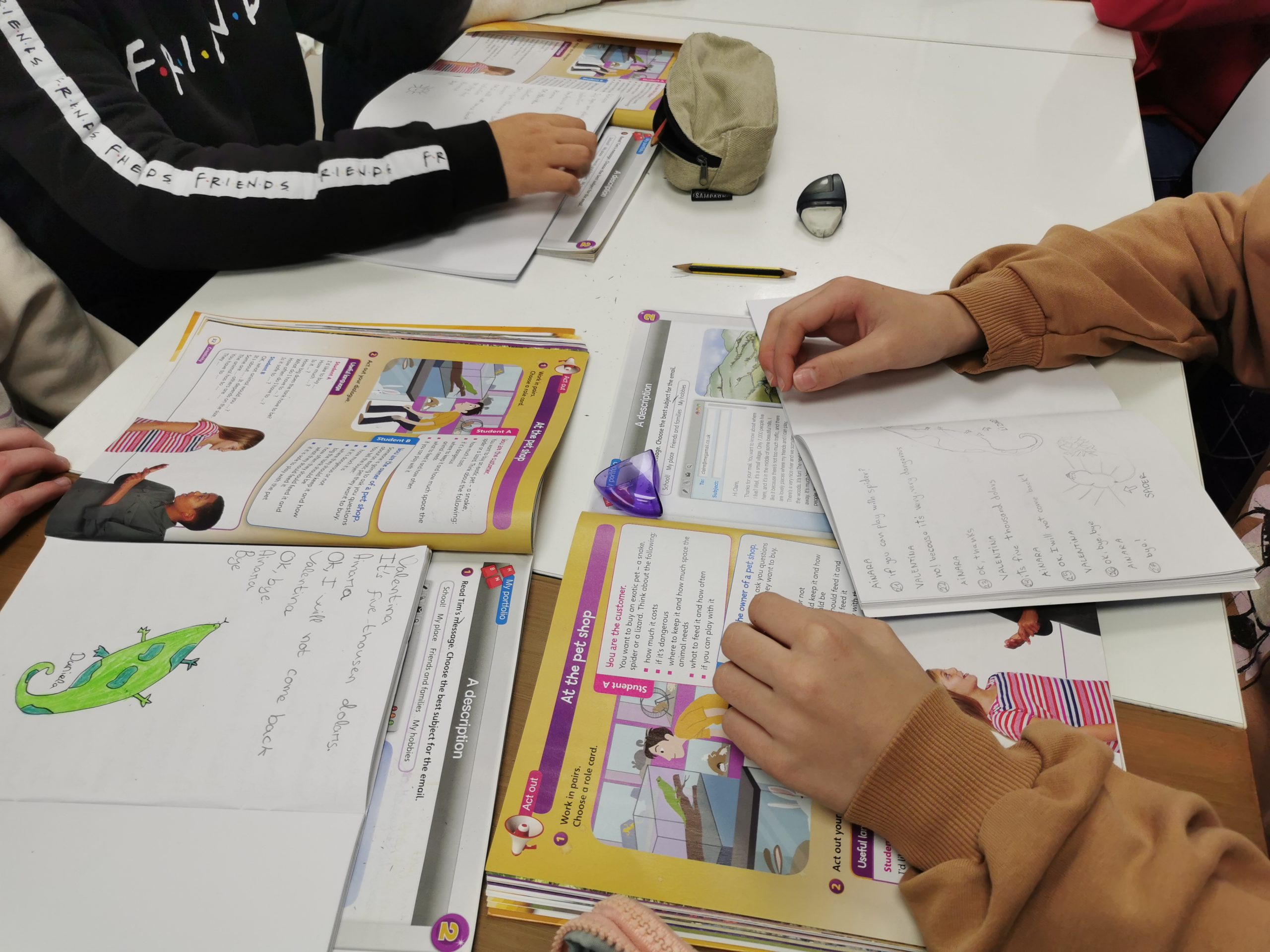 Per grups, els alumnes han escrit diàlegs on han representat una escena en una botiga d’animals extremadament perillosos.